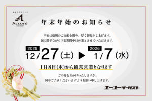 平素は格別のご高配を賜り、厚く御礼申し上げます。 年末年始につきまして、下記の期間を弊社の年末年始休業期間とさせていただきます。 ✼••┈┈┈┈┈┈┈┈┈┈••✼《年末年始休業期間》2025年12月27日(土)~2026 […]